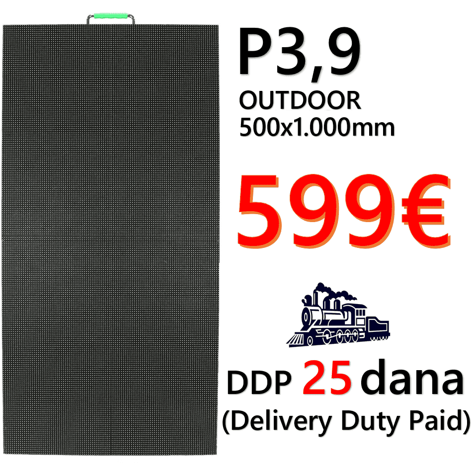 Vanjski LED zaslonski modul dimenzija 50x50cm (montažni/uklonjivi) za kombiniranje u veliki LED ekran. Visoka svjetlina do 5.000nit.